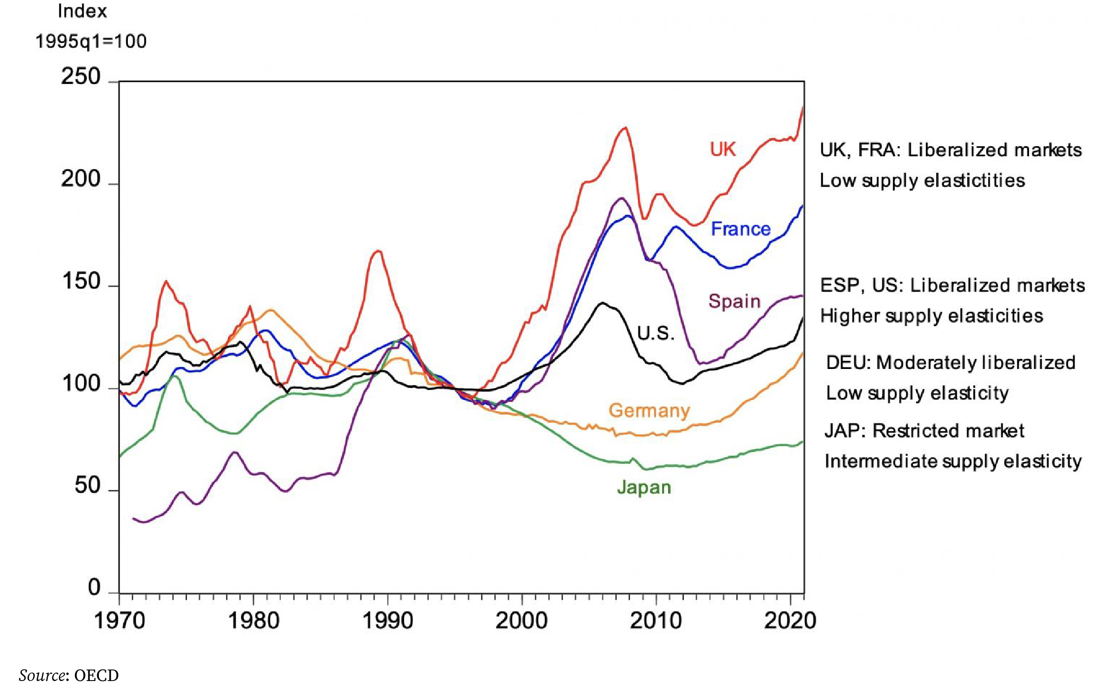 I suspect that these policies could put a damper on speculative activity in rental markets generally. There is some circumstantial evidence from the UK that the elimination of tenant protections lined up with increases in rents both in the late 1980s and after 1997. Landlords willing to put up with strong tenant protections are likely to be pursuing moderate, steady profits over the long term—very different from the private equity "gut it for profit and run" model. And I've been thinking about this graph from CEPR a lot, especially Germany and Japan: